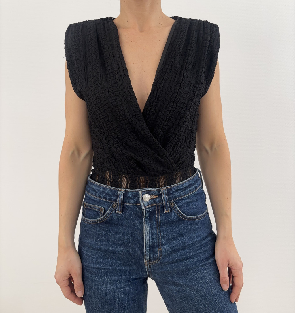 Fekete csipke body. Alul horogkapcsos.