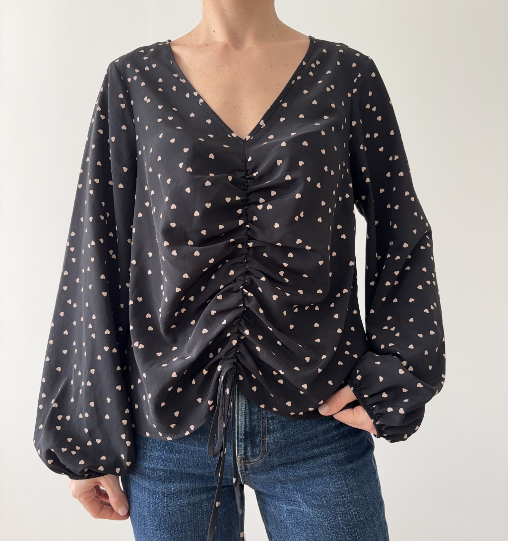George fekete szívecskés, zsinóros felső.