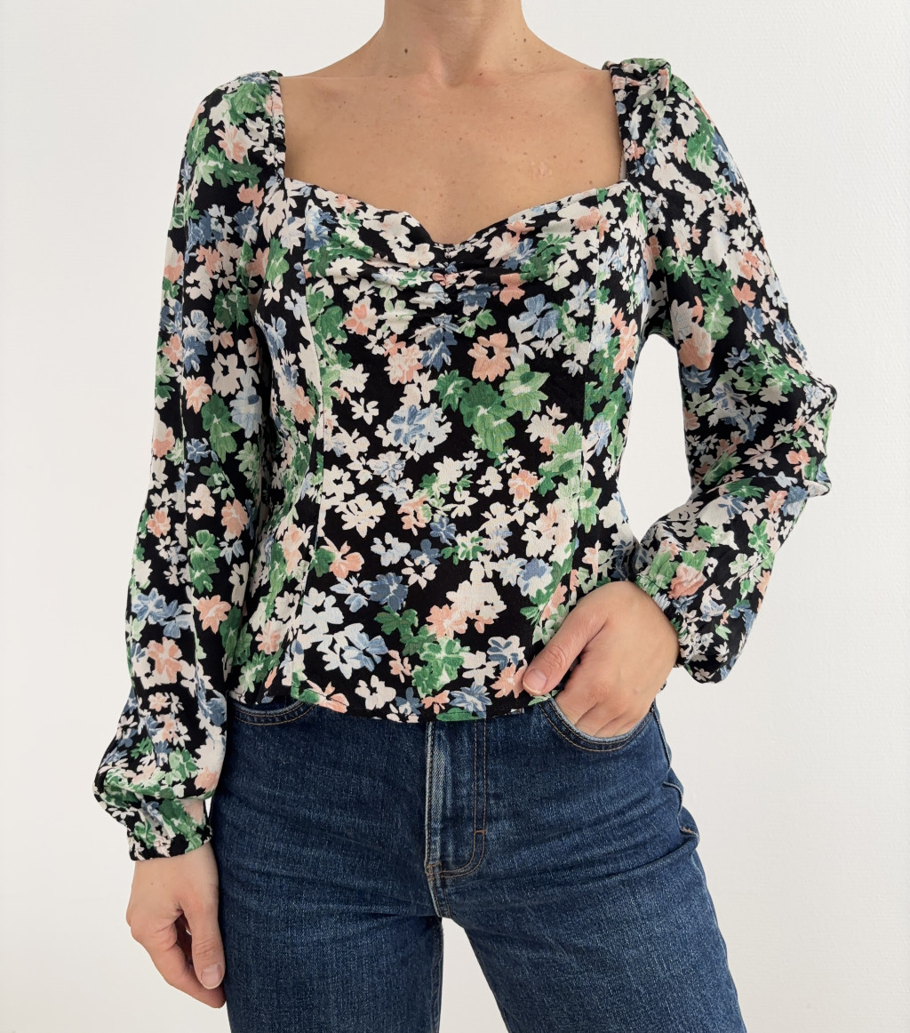 H&M fekete virágos felső. Hátul darázsolt.