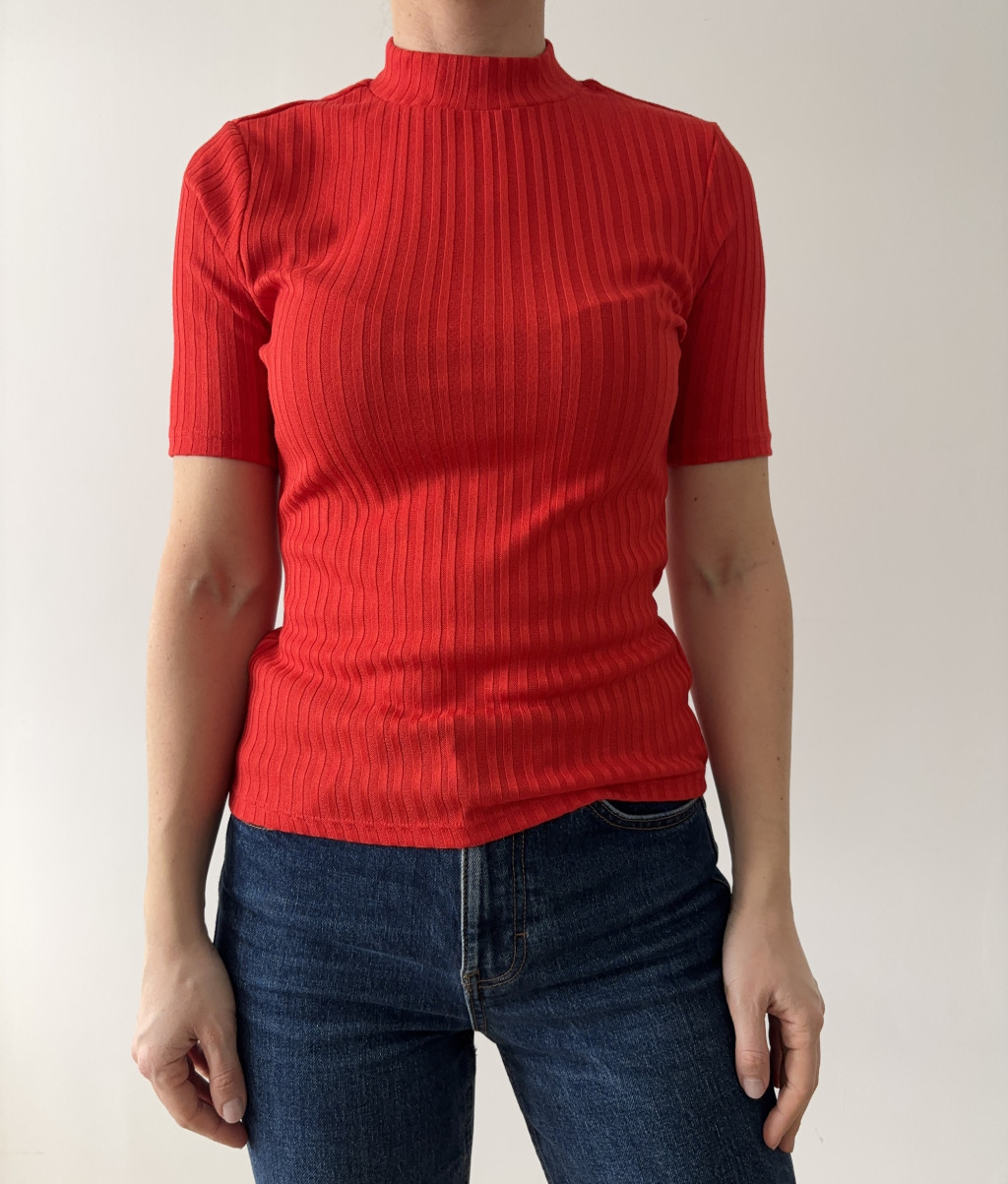 H&M piros bordázott felső.