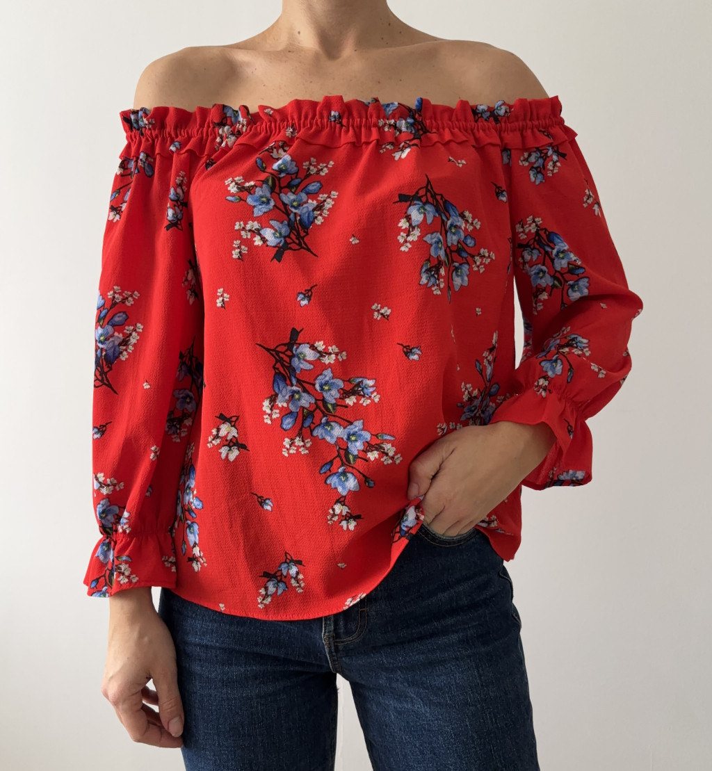 H&M piros virágos felső.