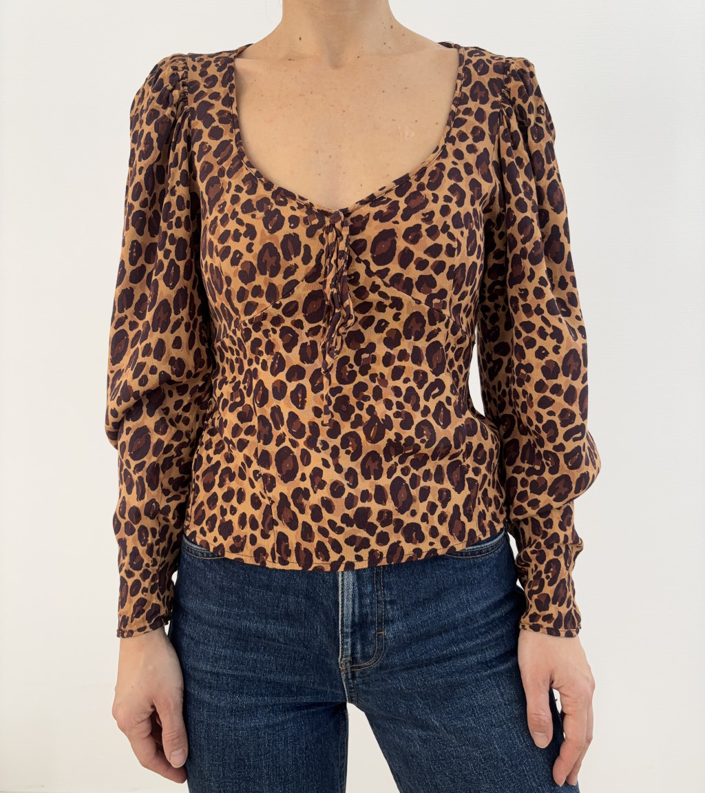 Mango barna mintás, megkötős felső.