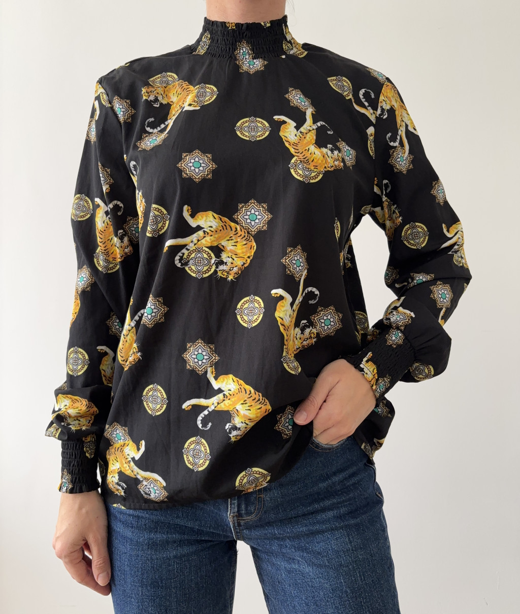 Only fekete mintás felső.