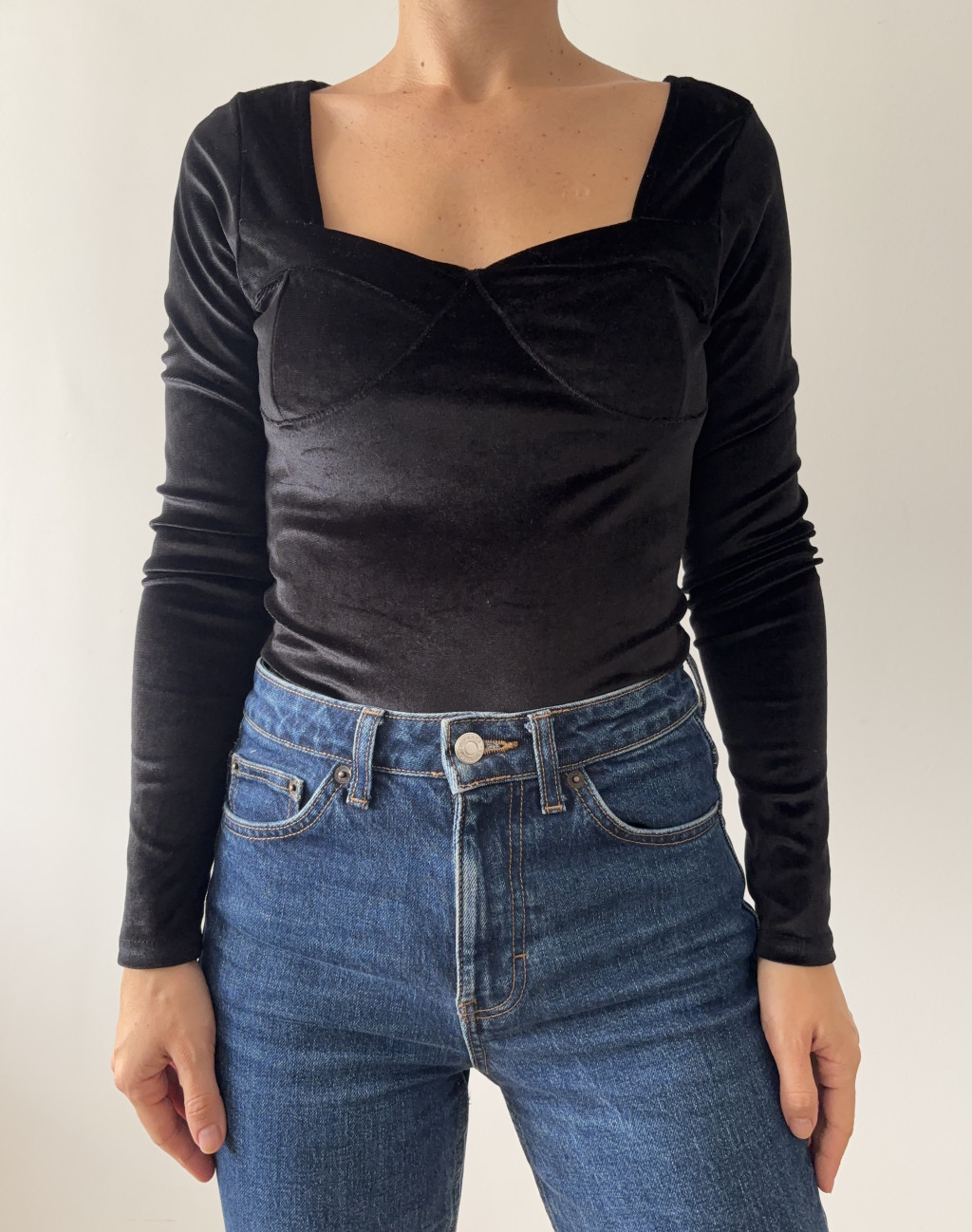 Primark fekete bársony body. Alul patentos.