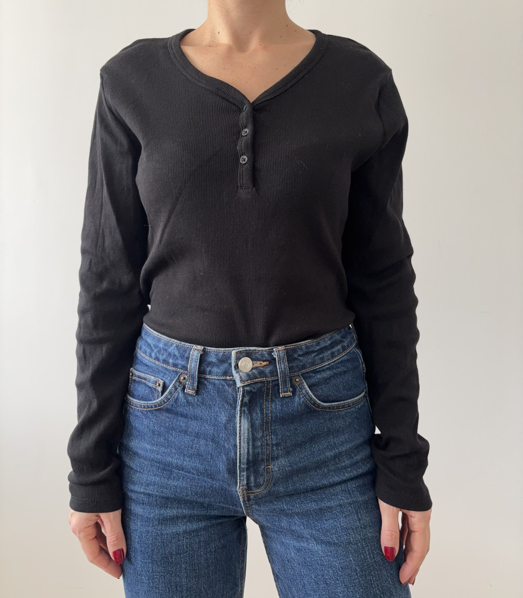 Primark fekete bordázott body. Alul patentos.
