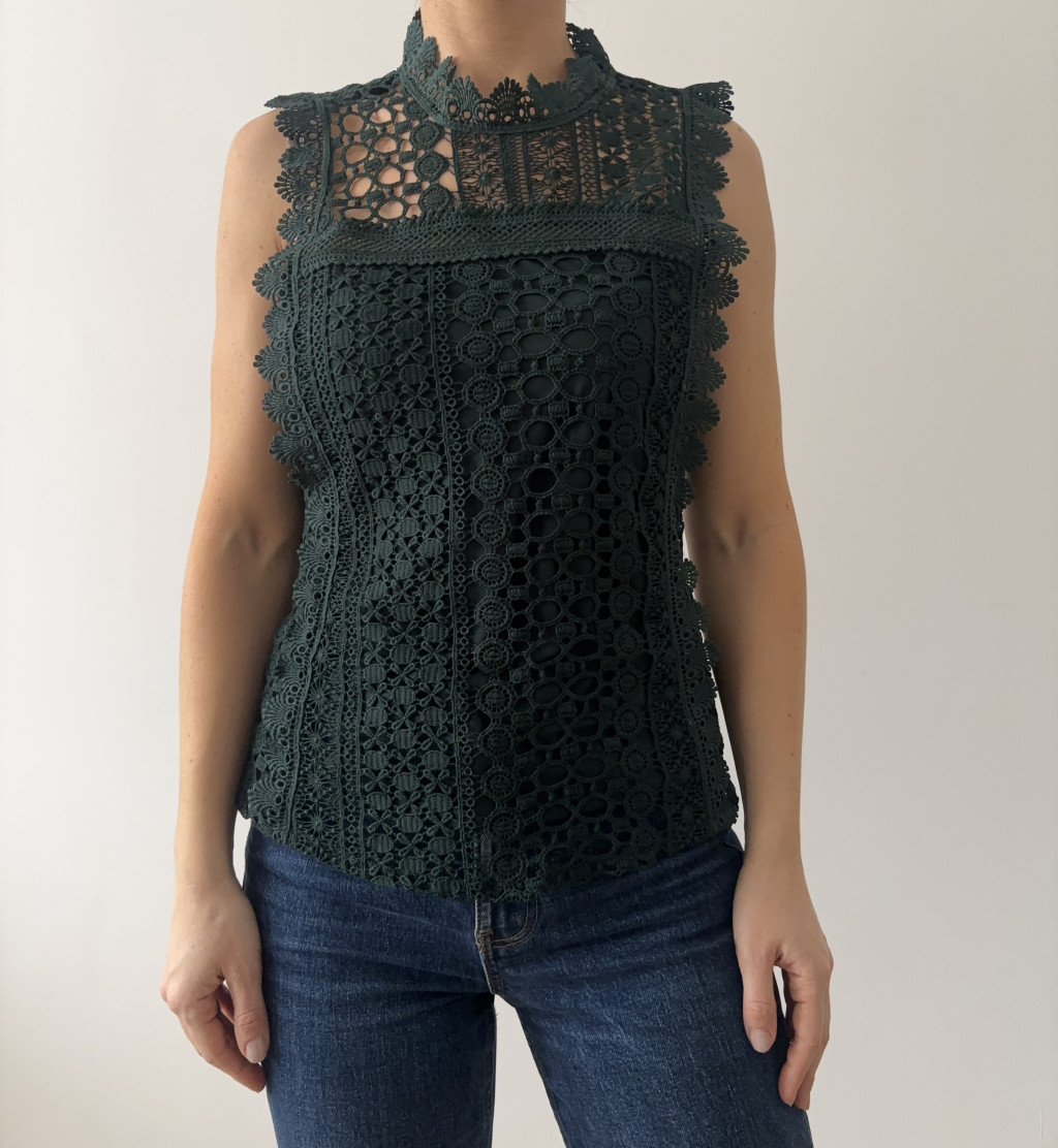 Reserved sötétzöld csipke felső.