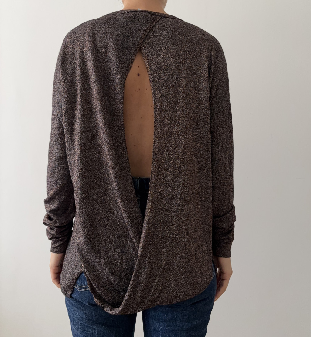 Warehouse csillogós hátul kivágott felső.