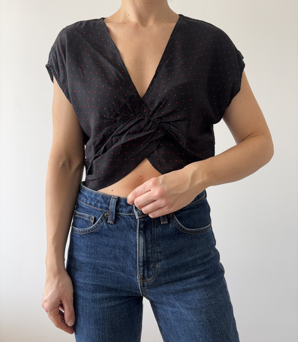 Zara fekete pöttyös felső. Hátul darázsolt.