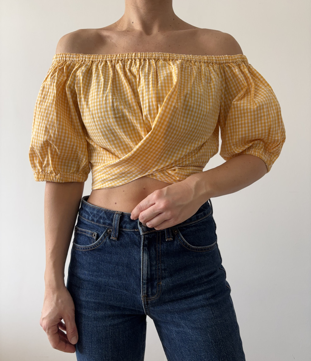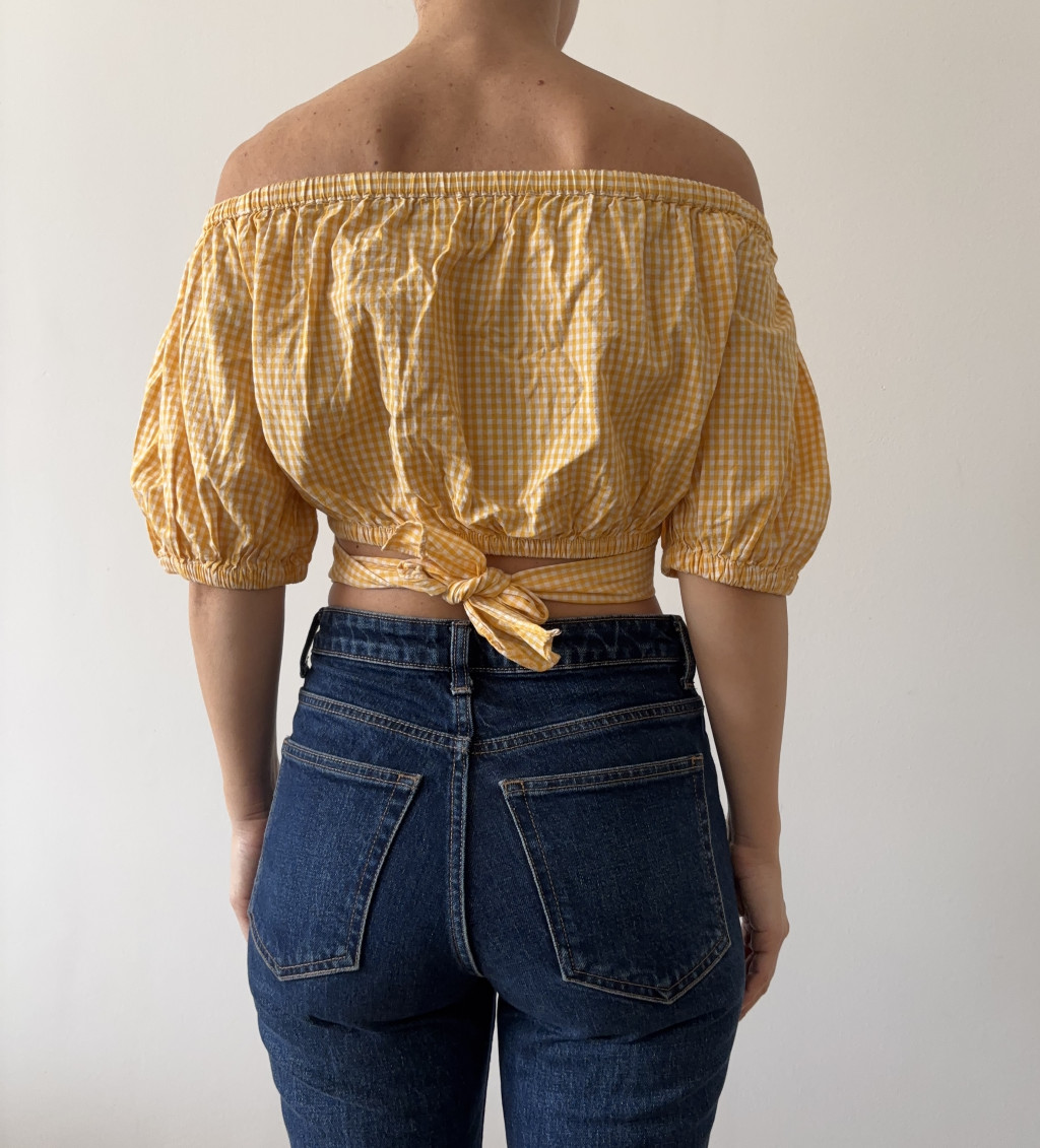 Zara sárga kockás, tetszőlegesen megköthető felső.